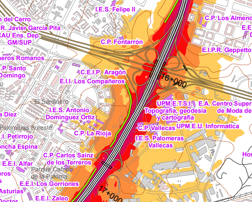 La intervención principal consiste en instalar una pantalla antirruido que aislará acústicamente el tramo de la M-40 que atraviesa el Instituto de Educación Secundaria Palomeras-Vallecas y el Campus Sur de la Universidad Politécnica de Madrid (UPM).