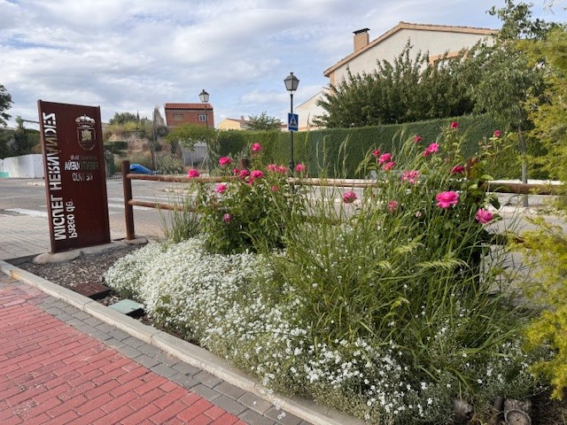 Flores en el paseo Miguel Hernández de Fuentidueña
