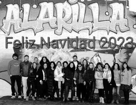 "Y a pesar de todo siempre es Navidad" Los Residentes de la Fundación Manzanares posan con el árbol que han confeccionado.