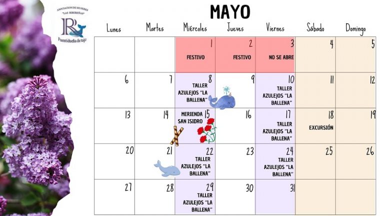 Calendario de actividades de mayo de la Asociación de Mujeres ‘Las Ribereñas’