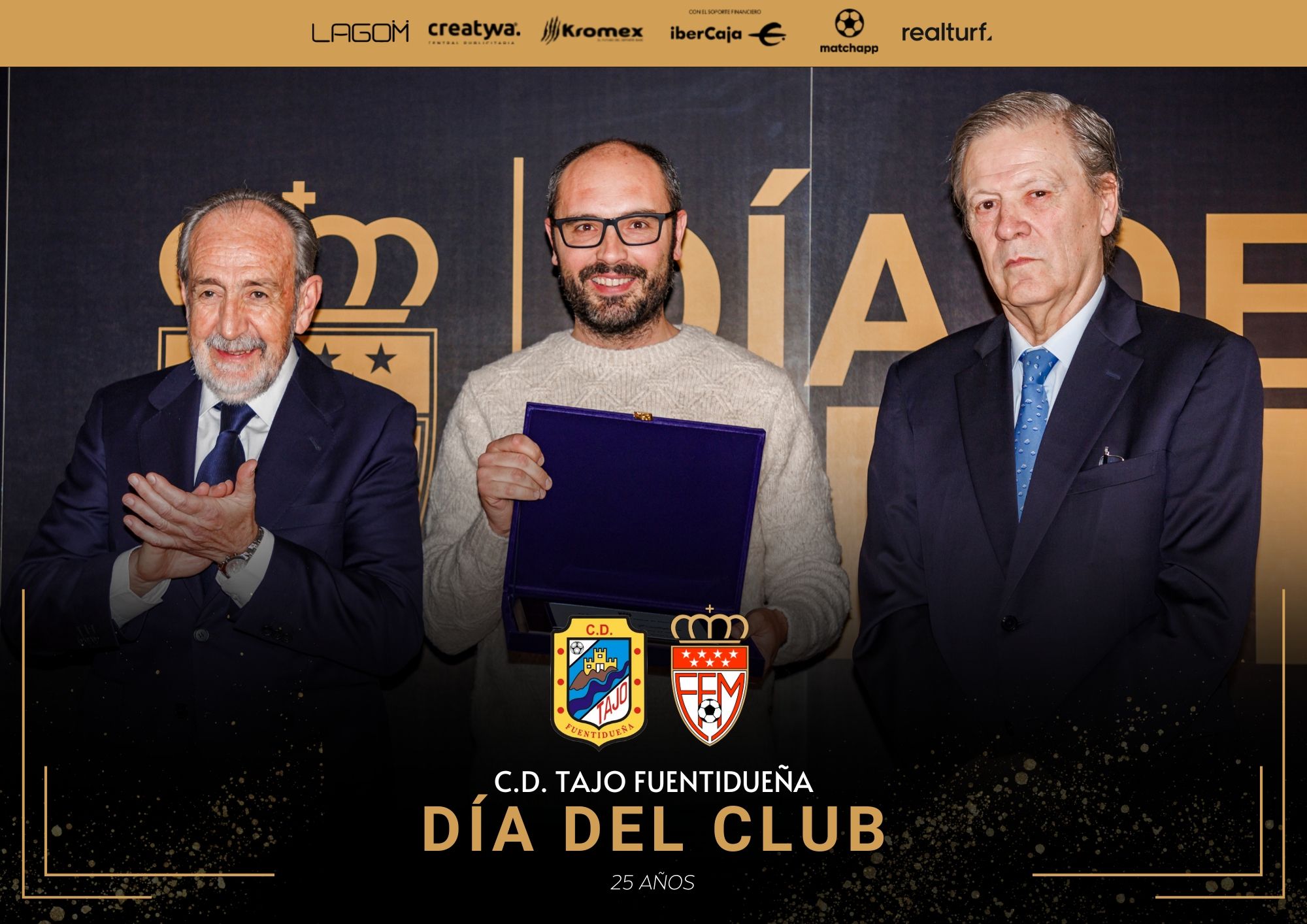 El pasado 9 de febrero la Real Federación de Fútbol de Madrid homenajeó al C.D. Tajo por sus 25 años federados. Juanjo Chelle recogió la placa conmemorativa en nombre del equipo de Fuentidueña y así manifestaban desde el club su alegría por este reconocimiento: "Ayer el universo futbolístico de Madrid, homenajeó a nuestro Club por …