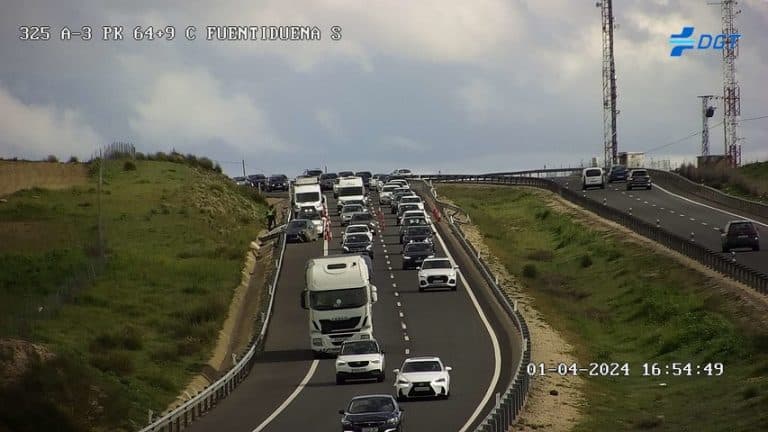Un accidente ocurrido a primera hora de la tarde en el kilómetro 64 deja circulación lenta en la A3. El accidente ha ocurrido en el kilómetro 64 y provoca a esta hora circulación lenta con paradas intermitentes desde Belinchón.