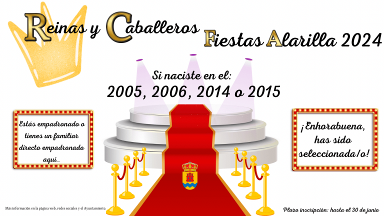 El reinado durará un año natural durante el cual las Reinas y Caballeros podrán ser requeridos para actuar en cualquier evento público organizado en el municipio.