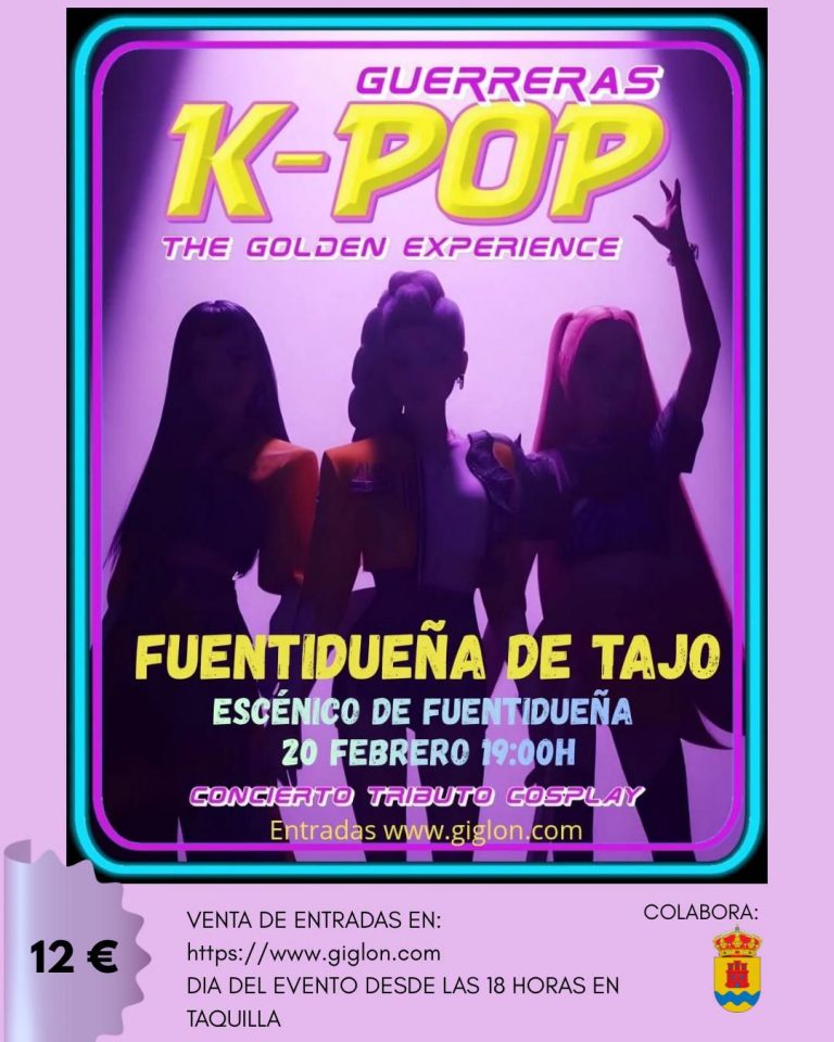 El Centro Escénico de Fuentidueña de Tajo acogerá el próximo viernes 20 de febrero, a las 19:00 horas, el espectáculo “Guerreras K-Pop: The Golden Experience”, una propuesta que acerca al municipio el fenómeno Guerreras K-Pop, un formato de concierto tributo cosplay que está conquistando a seguidores del pop coreano por su energía, estética y cuidada puesta en escena.