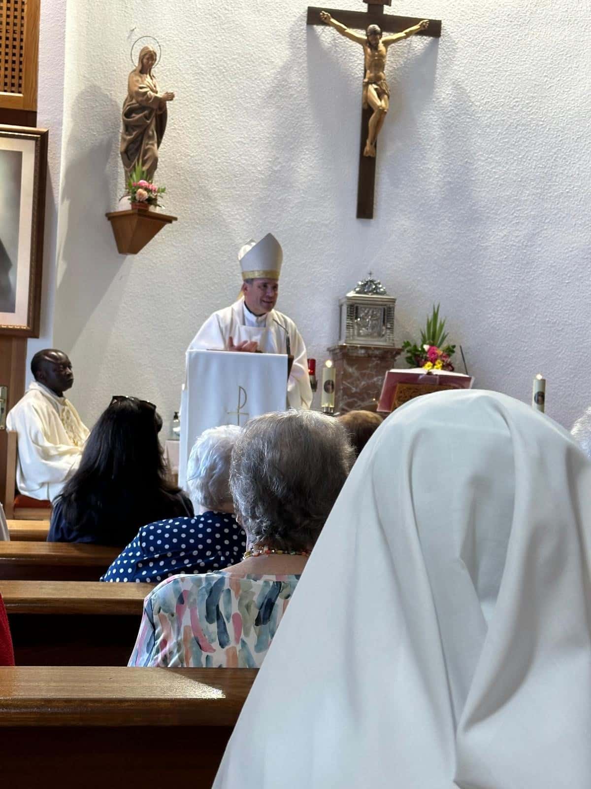 Más tarde, el Obispo pudo conocer la Residencia de Ancianos “Fundación Manzanares”, que gestionan las Hermanas de la Obra Misionera de Jesús y María. D. Antonio Prieto visitó las instalaciones, saludó a los residentes, mantuvo un encuentro muy cordial con las religiosas que están al frente de la residencia y, finalmente, celebró la Santa Misa para todos los asistentes.
