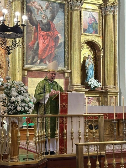 El pasado domingo 23 de junio de 2024 concluyó la visita pastoral del Obispo a la Parroquia de San Andrés Apóstol de Fuentidueña de Tajo, y también al Arciprestazgo de Villarejo de Salvanés. La visita había comenzado el viernes 21 de junio con una oración en la Parroquia, a la que asistió, junto con el párroco, un nutrido grupo de feligreses. A continuación, el Sr. Obispo fue recibido en el Ayuntamiento por el Sr. Alcalde y algunos miembros de la corporación municipal.
