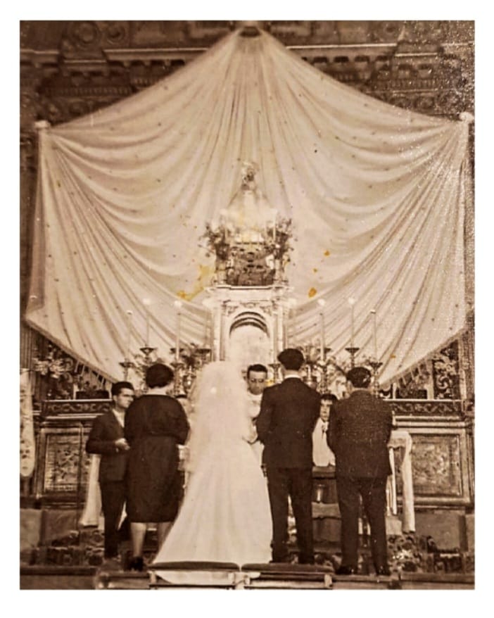 Las cuentas de Redes Sociales de la Hermandad de la Virgen de Alarilla publicaban en estos días pasados una imagen histórica relacionada con la patrona: en la fotografía de la boda de Domingo Carralero y Victoria Lopez se puede ver un “pabellón real” de la Virgen que se colocaba en los días de novena y fiestas.