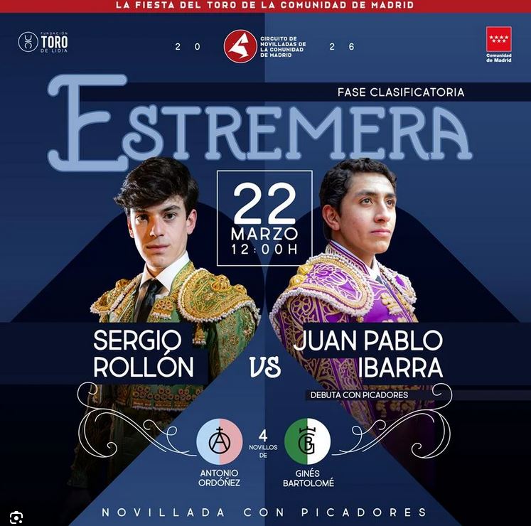 El municipio de Estremera será escenario este domingo 22 de marzo de la tercera clasificatoria del Circuito de Madrid, con una novillada que reunirá a dos jóvenes promesas del escalafón. El festejo se celebrará en horario matinal, a partir de las 12:00 horas, en una cita clave dentro del certamen.