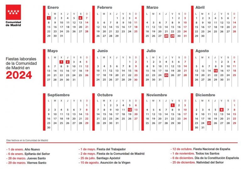 FIESTAS LABORALES DE LA COMUNIDAD DE MADRID EN 2024