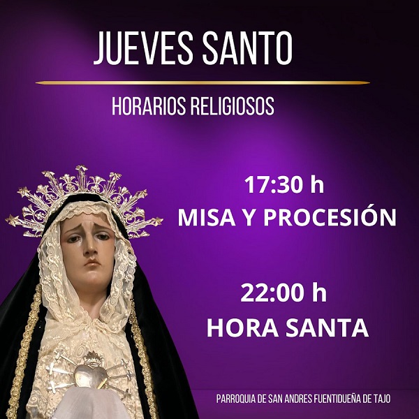 Horarios actos religiosos Jueves Santo Fuentidueña