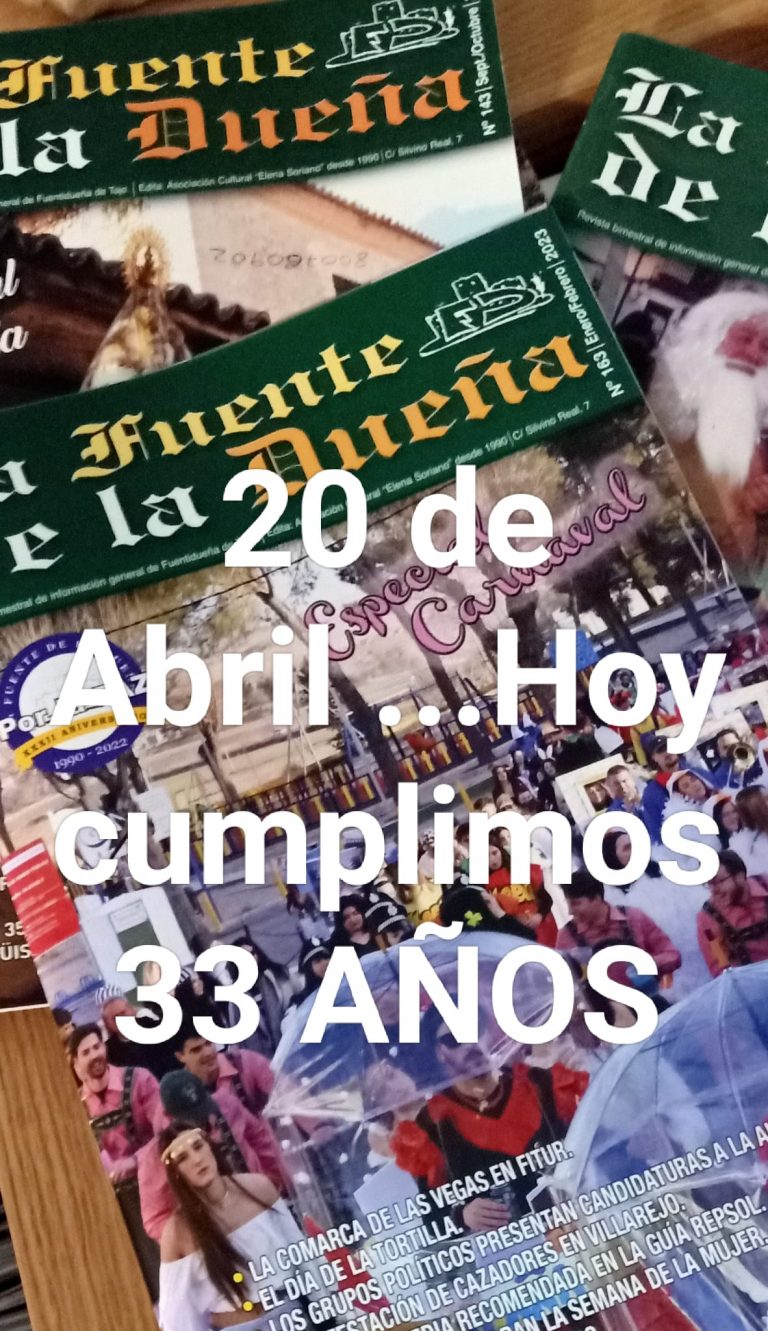 El 20 de abril del ’90 es la fecha en la que se inscribió en el Registro administrativo de empresas periodísticas de la Comunidad de Madrid la revista La FUENTE de la DUEÑA de Fuentidueña.