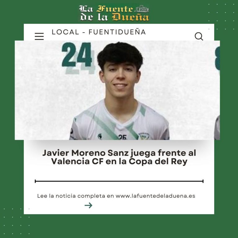 El joven futbolista Javier Moreno Sanz «More», hijo y nieto de fuentidueñeros, ha vivido esta noche uno de los momentos más emocionantes de su carrera deportiva al jugar parte del encuentro que su equipo, el C.P. Parla Escuela, disputó frente al Valencia Club de Fútbol en la Copa del Rey.