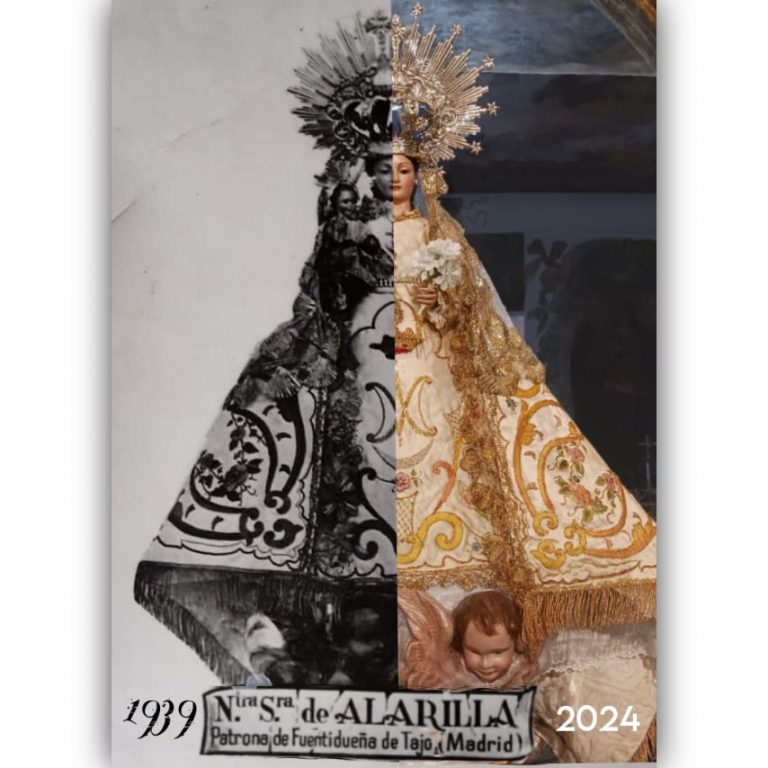 La Hermandad de la Virgen de Alarilla de Fuentidueña despidió el año 2024 con una emotiva imagen que conecta el pasado y el presente de su fervor religioso. La Virgen, en su primera estampa tras llegar al municipio el 17 de septiembre de 1939, luce exactamente igual que en su 85 aniversario, celebrado el pasado 17 de septiembre de 2024.