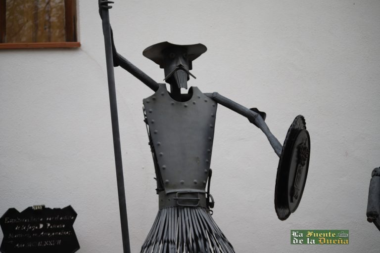 Detalle de la escultura de D. Quijote situada en la Avda. Elena Soriano en Fuentidueña