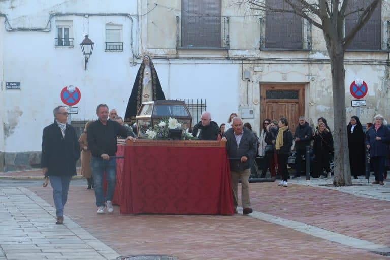 El Jueves Santo, tras la conmemoración de la última cena de Jesús con sus discípulos, se llevó a cabo la procesión con las tallas de Jesús Nazareno y la Virgen de la Soledad. Una procesión que amenizó la Asociación Musical y Cultural Fuentidueña de Tajo y que solo ya en su último tramo tuvo que ser más acelerada por la presencia de la lluvia.