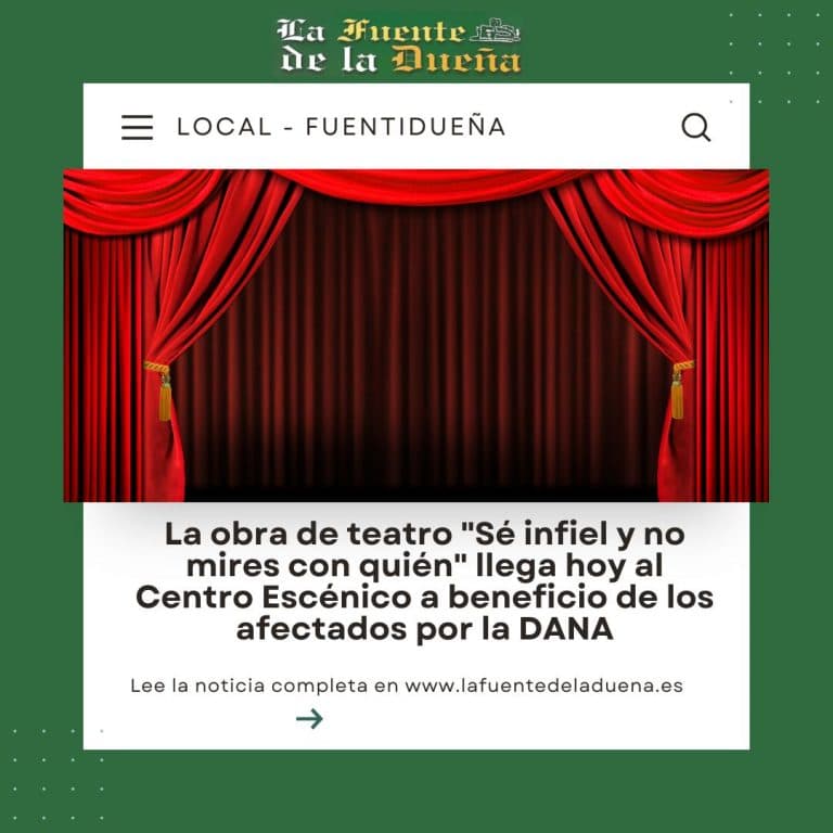 El Grupo ESTEATRO de Estremera presenta este sábado, 9 de noviembre, la comedia teatral «Sé infiel y no mires con quién», una divertida obra que será la primera representación teatral en el renovado Centro Escénico Villa de Fuentidueña en un evento organizado por el Ayuntamiento de Fuentidueña.