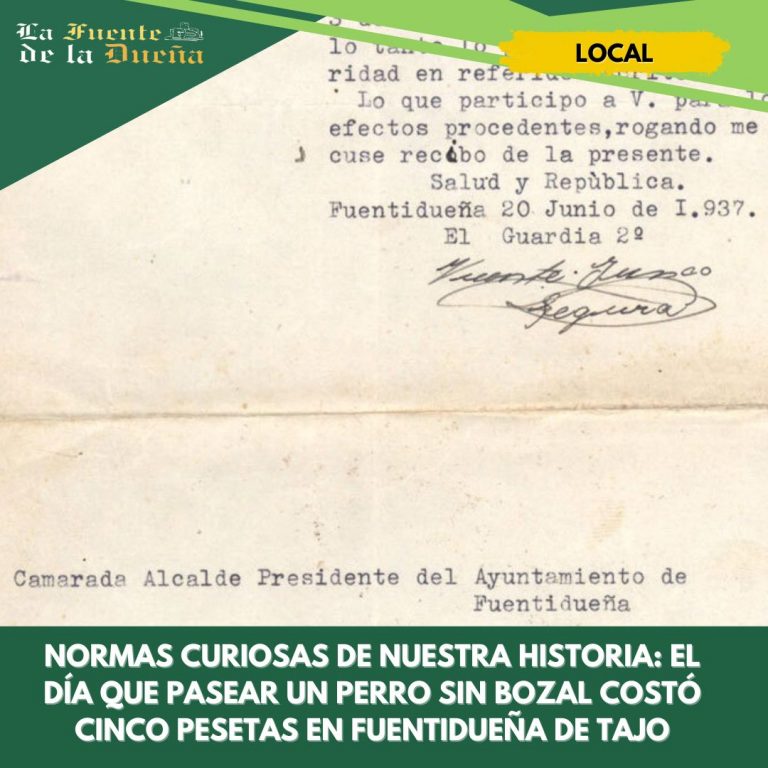 El pasado de Fuentidueña de Tajo está lleno de pequeñas historias que nos transportan a tiempos en los que la convivencia se regulaba con normas tan curiosas como estrictas. El Twitter del Portal de Archivos de la Comunidad de Madrid ha compartido recientemente un interesante episodio de 1937 que tuvo lugar en nuestro municipio y que nos muestra cómo se vivía y se legislaba entonces.