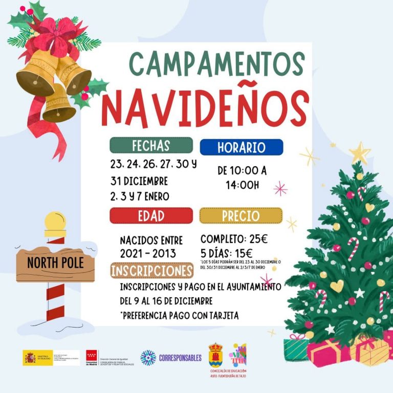 Con la llegada de la Navidad, el Ayuntamiento de Fuentidueña de Tajo, a través de la Concejalía de Educación, Igualdad y Diversidad, ha anunciado el regreso de los Campamentos Navideños, destinados a facilitar la conciliación laboral y familiar en estas fechas festivas.