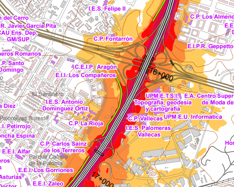 La intervención principal consiste en instalar una pantalla antirruido que aislará acústicamente el tramo de la M-40 que atraviesa el Instituto de Educación Secundaria Palomeras-Vallecas y el Campus Sur de la Universidad Politécnica de Madrid (UPM). Esta estructura se ubicará en el kilómetro 16,45 de la margen izquierda de la M-40, en sentido norte.