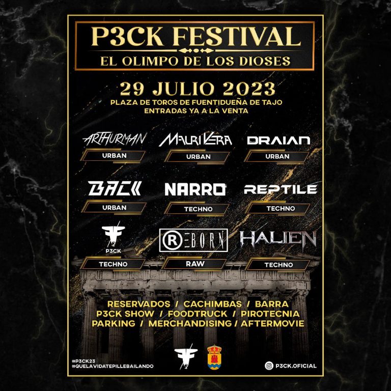 Fuentidueña de Tajo se prepara para recibir el tan esperado P3CK Festival, que regresa este año con su edición temática «El Olimpo de los Dioses». El evento de música, que se llevará a cabo el 29 de julio a las 23:30 horas en la Plaza de Toros «La Ribereña», promete ser como cada año una experiencia musical destacada en este periodo estival.