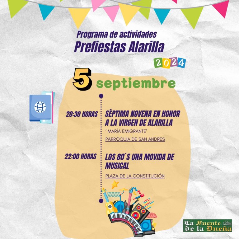 La jornada comenzará a las 20:30 horas con la séptima novena en honor a la Virgen de Alarilla, titulada «María Emigrante».