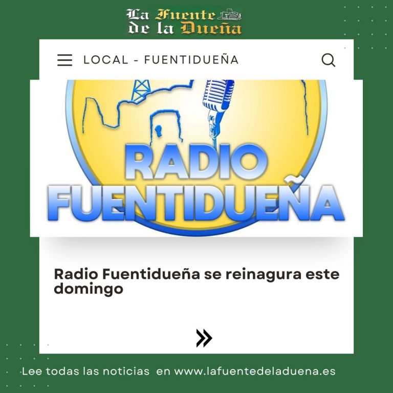 Este domingo, 22 de septiembre, a las 18:00 horas, Radio Fuentidueña volverá a estar en el aire como un renovado medio de comunicación y entretenimiento para los vecinos y vecinas de Fuentidueña de Tajo y los municipios de la Comarca.