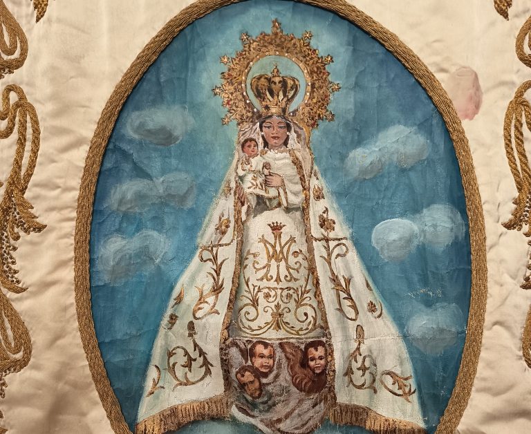 Gracias a su dedicación y cariño, la imagen de la Virgen vuelve a lucir en el estandarte.