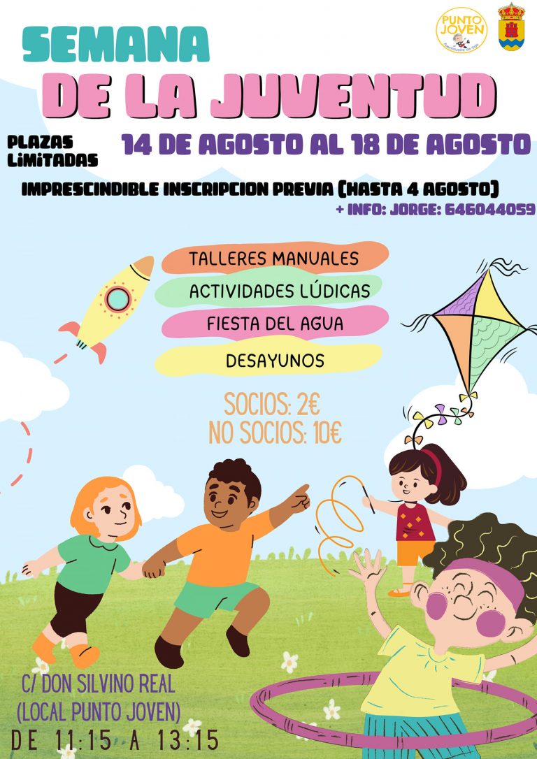 Durante la Semana de la Juventud, se realizarán divrsas actividades entre las que no faltaran talleres, manualidades, fiesta del agua o desayunos. Los talleres son a partir de 3 años.