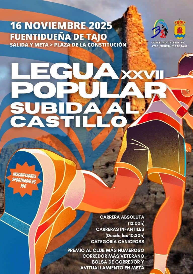 El próximo domingo 16 de noviembre de 2025, Fuentidueña de Tajo acogerá una de sus citas deportivas más emblemáticas: la XXVII edición de la Legua Popular Subida al Castillo, organizada por la Concejalía de Deportes del Ayuntamiento.